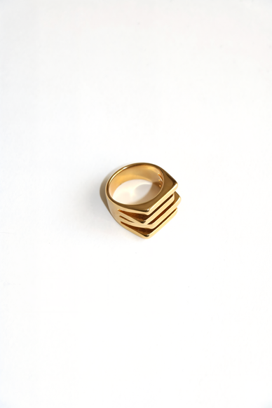 A true statement ring with bold geometric lines. Its sleek and contemporary design brings an architectural edge to your style, making it the perfect piece to elevate any ring stack. Versatile yet striking, this modern icon can be worn solo for a minimalist statement or mixed with other rings.