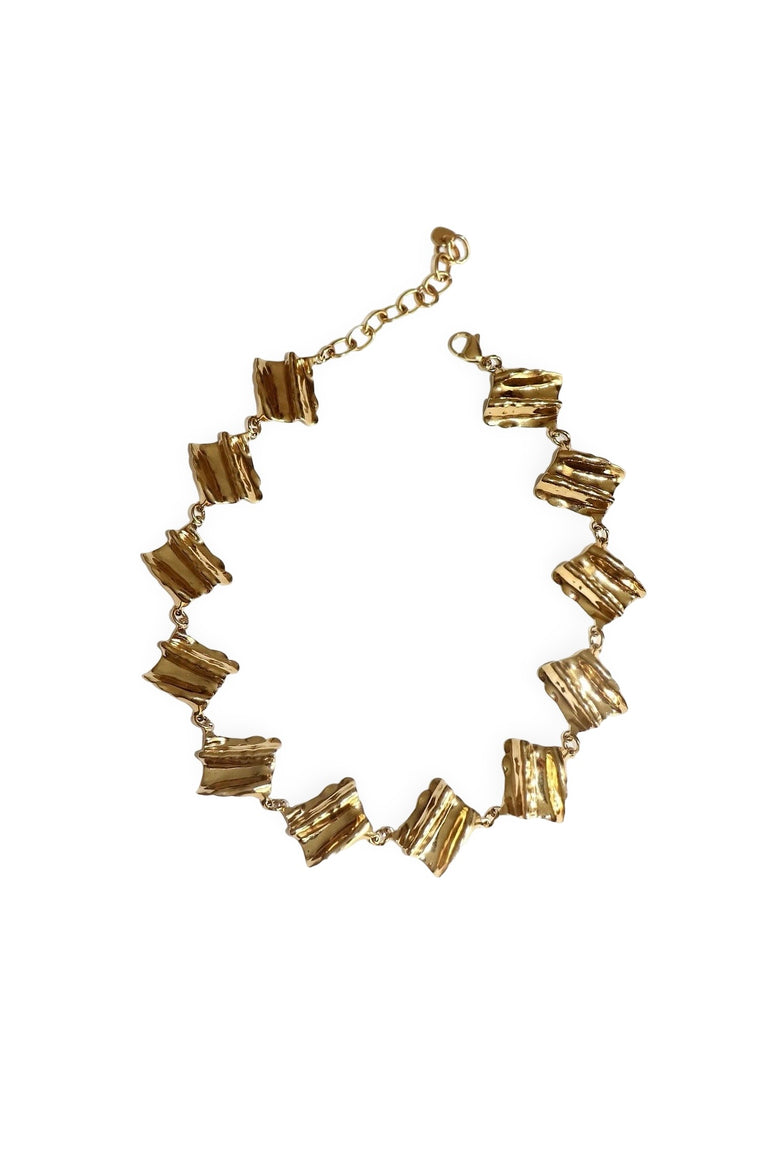 A choker with an organic design and subtle textured surface, minimalist yet full of presence. Its clean lines and sculptural feel make it the perfect finishing touch to any look.