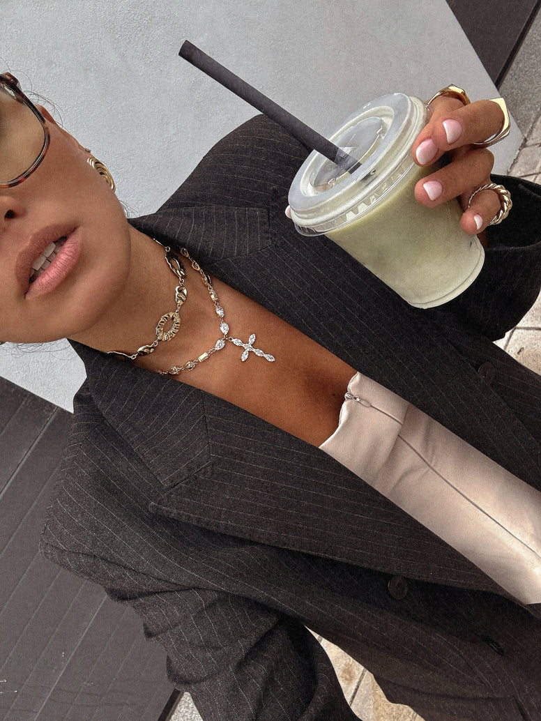 The necklace that will instantly elevate your look. With sparkling zirconia crystals set along the entire piece and finished with a striking cross-shaped pendant, it’s a versatile jewel that transitions seamlessly from day to night.