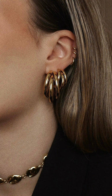 Sleek and contemporary hoops are designed to make a statement subtle twist. Their layered silhouette gives the impression of wearing three perfectly aligned hoops, all in one lightweight and comfortable piece.