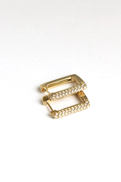 Delicate hoop earrings featuring zirconia crystals on one side and a sleek polished finish on the other. A versatile, timeless, and effortlessly elegant piece. A true must-have for any jewelry lover.
